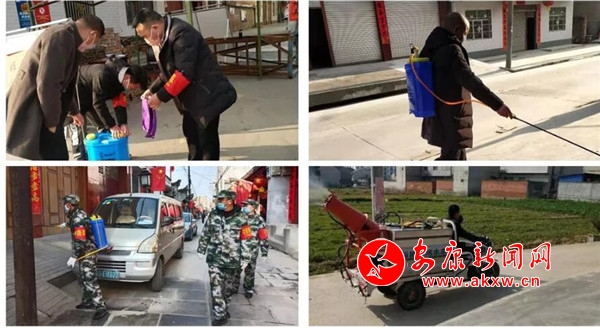 “外防輸入,內(nèi)防擴散”,這是命令,這是責(zé)任,這是擔(dān)當(dāng)。是他們對村里挨家挨戶排查,進行精準摸排,建立動態(tài)監(jiān)測臺賬,對從武漢回來的,要求他們在家自我隔離,每日還要去觀察他們的情況及時進行上報;是他們在主路上設(shè)立監(jiān)測點,對進出村莊的人員進行嚴格登記管理并測量體溫,發(fā)現(xiàn)異常的及時報備;是他們用鄉(xiāng)村大喇叭輪番播報,或在田間地頭拉起通俗易懂的橫幅,或用村民聽得懂、記得住的順口溜進行宣傳;是他們身背噴霧器把村莊的每一個角落消毒;是他們模范帶頭把村里的垃圾清除干凈…。他們用自己的實際行動詮釋著與村民的深情厚誼;村民自覺做到春節(jié)不串門、不扎堆、不聚餐、推遲婚禮、簡辦喪事、謹防人員流動。