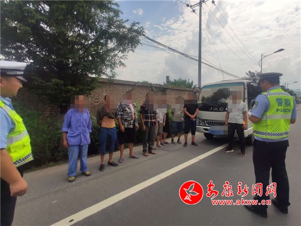 7月31日15時許,大隊(duì)執(zhí)勤民警在316國道沿線開展路面巡邏,行至恒口東大門時,發(fā)現(xiàn)一輛號牌為皖A(yù)C***C號輕型欄板貨車后車廂有違規(guī)載人嫌疑,巡邏民警立即上前攔停,示意駕駛?cè)死钅衬惩\嚱邮軝z查。經(jīng)查,該貨車核定載人數(shù)為5人,實(shí)際載9人,貨車車廂違法載客4人,屬于貨車違法載客的嚴(yán)重交通違法行為。