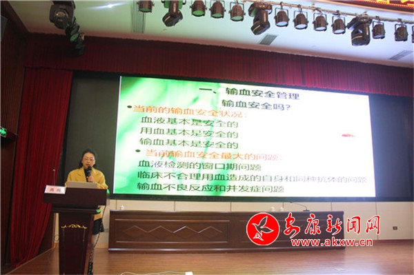 本次培訓(xùn)特別邀請(qǐng)了西安交通大學(xué)第一附屬醫(yī)院輸血科主任王寶燕教授,她結(jié)合自身多年工作經(jīng)驗(yàn),就《臨床輸血流程管理和臨床案例分析》進(jìn)行了深入細(xì)致的講解。安康市中心醫(yī)院輸血科禹梅老師從血液管理、成分血的輸注、評(píng)估等方面做了《臨床輸血實(shí)踐與控制》的精彩闡述。安康市中心血站副站長(zhǎng)李宏就近年來(lái)全市臨床輸血質(zhì)量管理專項(xiàng)督查中存在的問(wèn)題進(jìn)行了一一剖析,通報(bào)了各臨床用血單位無(wú)償獻(xiàn)血募集指標(biāo)完成的情況。