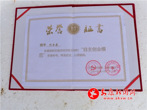 筆者從陳斌口中得知,2019年6月,代全花分別被安康高新區(qū)和五檔村黨支部、村委會授予“自強標(biāo)兵”和“自主創(chuàng)業(yè)模范”榮譽稱號,去年一家成功實現(xiàn)了脫貧。?