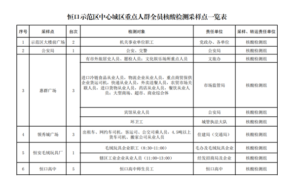 附件:恒口示范區(qū)中心城區(qū)重點(diǎn)人群全員核酸檢測采樣點(diǎn)一覽表