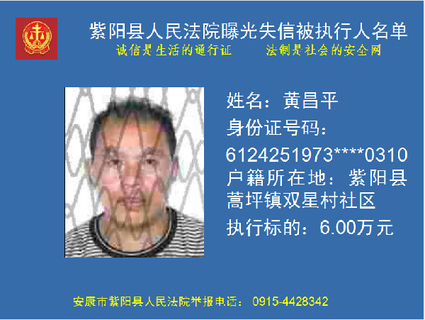曝光失信 | 紫陽縣人民法院:關于敦促黃昌平履行法定義務的公告