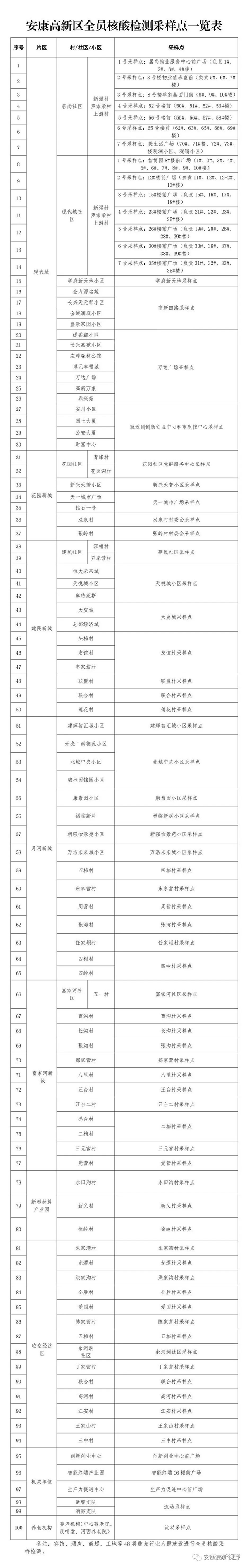 附件:安康高新區(qū)全員核酸檢測采樣點一覽表