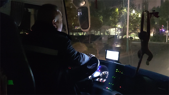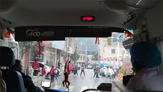 環(huán)顧車內(nèi),面包、牛奶、熱水……這里更像是他們的第二個家。我和司機師傅開玩笑說:“今天出發(fā)夠早的啊,太陽都還沒上班呢。”司機輕描淡寫的說:“這算晚的了,以前去更遠(yuǎn)的鎮(zhèn)上,四五點就要出發(fā)?!彼p眼筆直的看向前方,仿佛看見了比路更多的東西,而在我眼里,那不過是車燈照不到盡頭的一片迷霧。