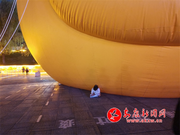10月6日,漢江"大黃鴨"打卡點,出現(xiàn)了翻越圍欄,進(jìn)入充氣氣球禁止區(qū)域的不文明旅游行為。(實習(xí)生 康研 王千龍)