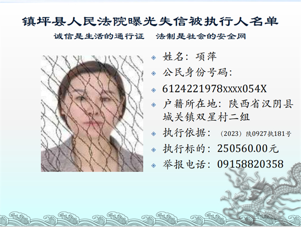 曝光失信 | 鎮(zhèn)坪法院2023年第三期失信人員名單公布