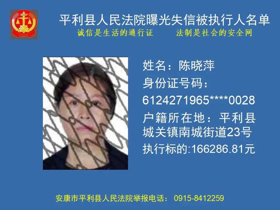 曝光失信 | 平利縣人民法院曝光失信被執(zhí)行人名單(2023年第四期)