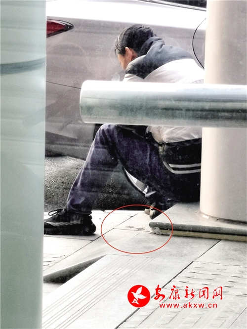 11月23日,有市民在安康城區(qū)江北大道地下通道出入口隨地吐痰。記者 潘潤生 攝?
