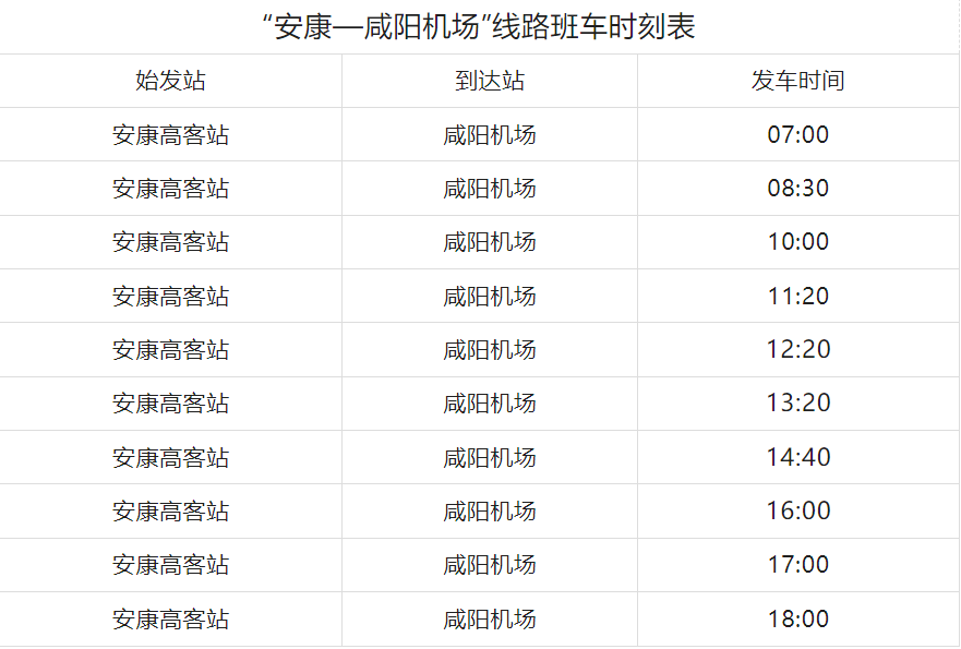 “安康—咸陽機場”客運線路發(fā)車時間調整