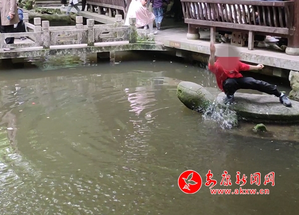 5月2日,香溪洞風(fēng)景名勝區(qū)有游客違反景區(qū)安全規(guī)定,存在攀爬護(hù)欄,下池嬉水等不文明旅游行為。(實習(xí)記者 冉麗雯)