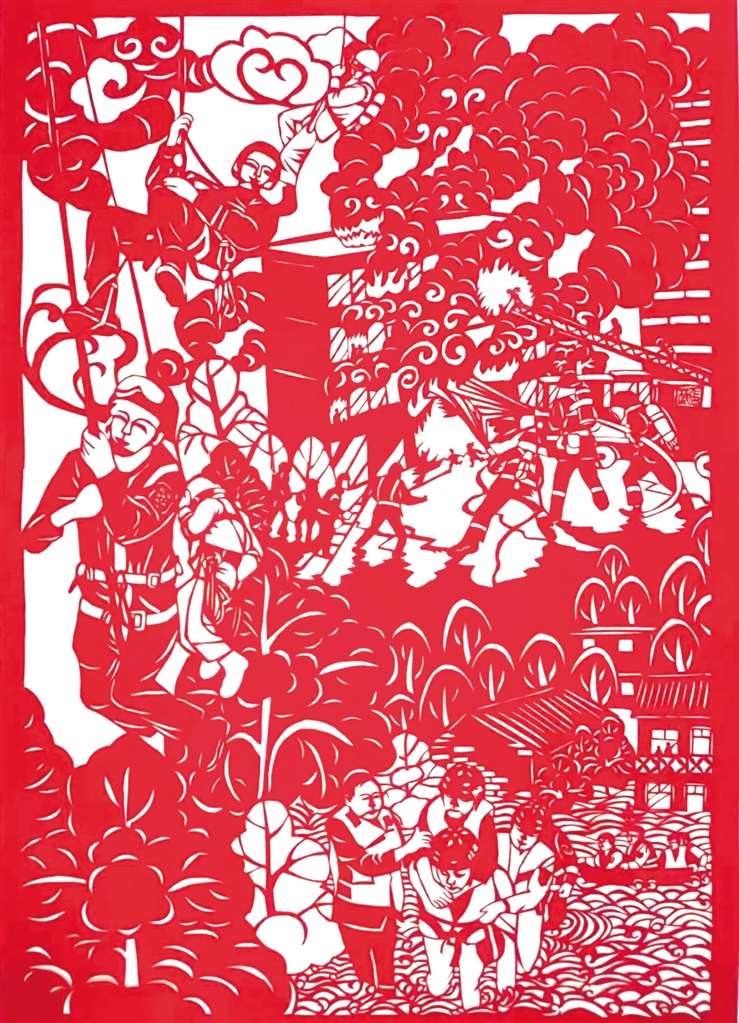 2022年,張莉的剪紙作品在“我與火焰藍(lán)”安康消防授旗訓(xùn)詞三周年風(fēng)采繪畫大賽中,榮獲“成人組優(yōu)秀作品獎(jiǎng)”,并被主辦方收藏。2023年張莉帶隊(duì)參加“德潤(rùn)安康”安康市首屆校園科技藝術(shù)節(jié),在剪紙區(qū),小隊(duì)員們發(fā)揮巧思妙想,精心設(shè)計(jì)、細(xì)心折剪,只見刀尖一開一合,紅紙不斷翻轉(zhuǎn),一幅幅栩栩如生、惟妙惟肖的作品就讓觀眾親眼見證了“刀光剪影”的神奇。隊(duì)員們嫻熟的技藝,精美的作品迅速吸引了許多人駐足參觀。