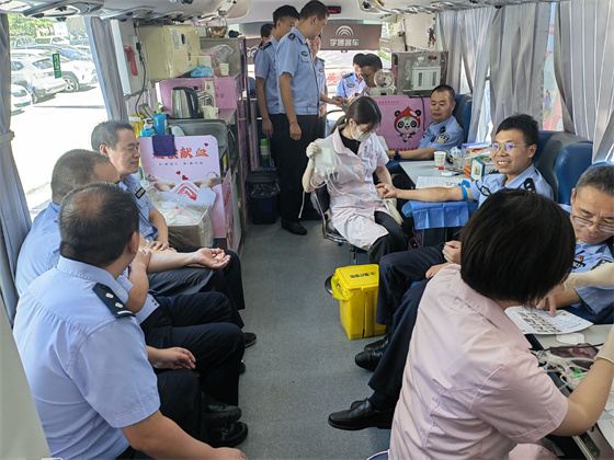 活動(dòng)現(xiàn)場,參與獻(xiàn)血的公安干警們?cè)缭鐏淼将I(xiàn)血點(diǎn),在醫(yī)護(hù)人員的指導(dǎo)下,認(rèn)真填寫獻(xiàn)血登記表,依次接受健康征詢、血液初篩檢查、現(xiàn)場采血等流程。鮮紅的熱血順著導(dǎo)管緩緩流出,匯聚成了一份份愛心,每個(gè)人的臉上都洋溢著堅(jiān)定和自豪。