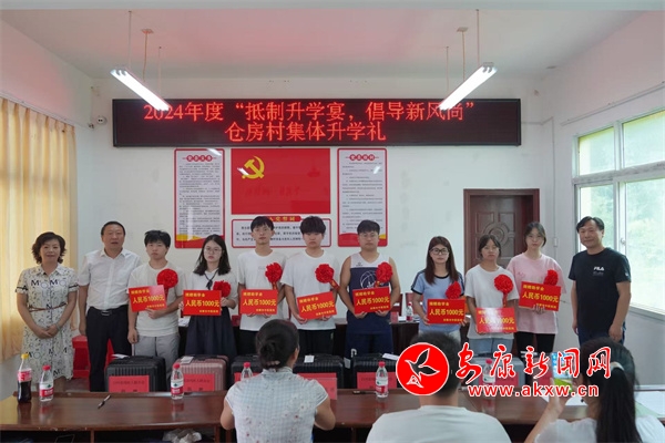 自2017年白河縣首場(chǎng)集體升學(xué)禮在倉(cāng)房村順利舉辦以來(lái),倉(cāng)房堅(jiān)持村連續(xù)七年為準(zhǔn)大學(xué)生們舉辦集體升學(xué)禮儀式。8月9日,倉(cāng)房村攜手市中醫(yī)醫(yī)院和縣殘聯(lián)在全鎮(zhèn)率先開展集體升學(xué)禮儀式,在儀式上市中醫(yī)醫(yī)院和縣殘聯(lián)分別為準(zhǔn)大學(xué)生們送上助學(xué)金和行李箱,并勉勵(lì)他們求學(xué)路上要堅(jiān)定理想,培養(yǎng)良好的人生觀、價(jià)值觀,勤奮學(xué)習(xí)練就過(guò)硬本領(lǐng),回報(bào)家鄉(xiāng)。