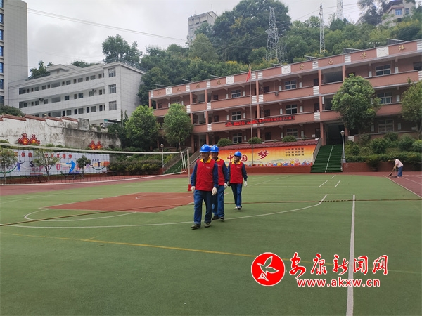 在白河縣冷水鎮(zhèn)中心小學(xué),工作人員仔細檢查校園用電設(shè)備情況,由于暑假期間學(xué)校用電設(shè)施大多處于閑置負荷狀態(tài),加上高溫、暴雨等天氣影響,存在諸多安全用電隱患。工作人員重點對教室、辦公室、食堂等場所的供電設(shè)備進行“把脈問診”,并對這些區(qū)域的開關(guān)插座進行試用,確保用電無憂。