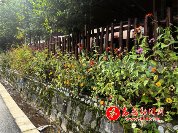 在廣貨街集鎮(zhèn),橋梁欄桿及院墻上定制的75個(gè)花盆已經(jīng)安裝到位,900個(gè)擺放花盆也陸續(xù)開始移栽布景,紫薇、繡球、月季、串串紅等鮮花競(jìng)相開放,十分美麗。為確保花朵成活率,安排專人進(jìn)行日常管護(hù),按需澆水。走到其他村(社),依然可以看見身穿紅馬甲的志愿者們?cè)谇宄愤呺s草,打掃衛(wèi)生,在重點(diǎn)段落栽種適宜花朵,整個(gè)鎮(zhèn)域內(nèi),花朵競(jìng)相開放、香氣四溢。
