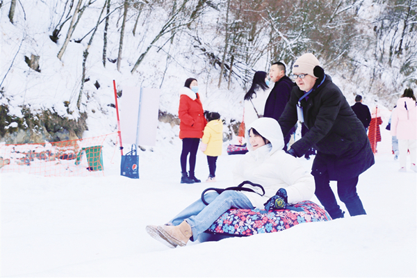 雪場上,滑雪、嬉雪、賞雪等多種冰雪項目讓偌大的滑雪場充滿笑聲、歡呼聲,景區(qū)內(nèi)熱鬧非凡。