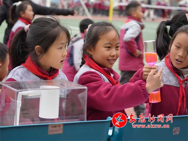 在各個科學(xué)實驗項目前,同學(xué)們駐足停留,認(rèn)真觀察、反復(fù)操作,沉浸在知識的海洋與科技的奧秘中,操場上不時傳來陣陣驚嘆聲?!拔易罡信d趣的是機(jī)器人,通過手柄遙控能讓機(jī)器人模仿奔跑跳躍,跟我們打招呼,真是太神奇了,我以后要更加努力地學(xué)習(xí)科學(xué)知識,探索更多的未知領(lǐng)域?!蔽迥昙壱粚W(xué)生激動地說。