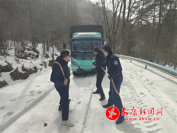 2月19日12時(shí)許,寧陜縣公安局龍王派出所值班民警接到救援電話:有一輛貨車駕駛到太山廟鎮(zhèn)太山村某路段被困,請(qǐng)求救助,接到電話后龍王派出所民輔警迅速趕往事發(fā)地。當(dāng)時(shí)大雪已經(jīng)下了一天,該路段因山路崎嶇坡陡,部分路面結(jié)冰打滑,民警克服天氣不利條件趕到現(xiàn)場(chǎng)。到現(xiàn)場(chǎng)后,民警看見(jiàn)一輛貨車被困在雪地中,民警查看現(xiàn)場(chǎng)環(huán)境后,利用攜帶鐵鍬、拖車?yán)K等救援物資迅速開展工作,經(jīng)過(guò)2個(gè)多小時(shí)終于安全將被困車輛牽引至安全區(qū)域。