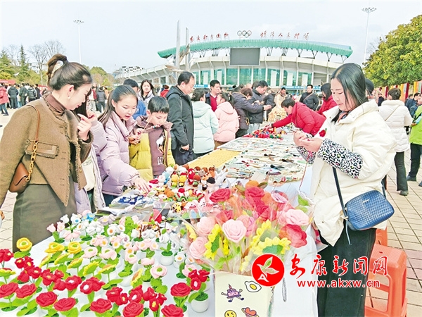 今年春節(jié)期間,胡運(yùn)翠接到了漢濱區(qū)文化館的電話,邀請她去金州廣場非遺展示區(qū),展示她的手工編織作品,同她的作品一同列入展示的還有花饃、糖畫、手工竹節(jié)人等。她精心準(zhǔn)備了許多手工編織品,在金州廣場右側(cè),胡運(yùn)翠的攤位前圍滿了小朋友,他們被這些栩栩如生的小動物深深吸引,紛紛拉著家長購買。胡運(yùn)翠一邊熱情地向顧客介紹自己的作品,一邊現(xiàn)場編織,嫻熟的手法引得眾人連連稱贊。