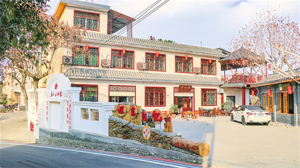 村委會對面,村民詹永斌站在院子里,樂呵呵地向前來探親的侄子們介紹起改造前后的變化。“去年這時候,我家側(cè)面還是光禿禿的水泥墻,現(xiàn)在政府有好政策,農(nóng)房改造補貼一萬五,把家里的外墻、屋檐、屋頂全部做了美化,墻面也刷白了,看起來美觀不少?!?/p>