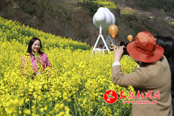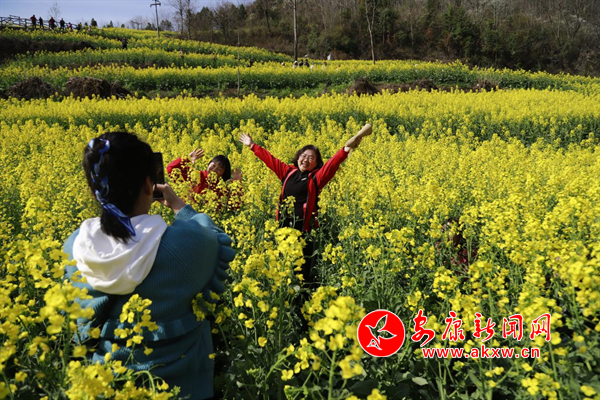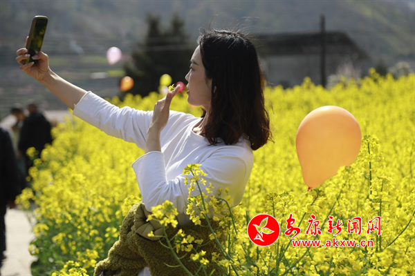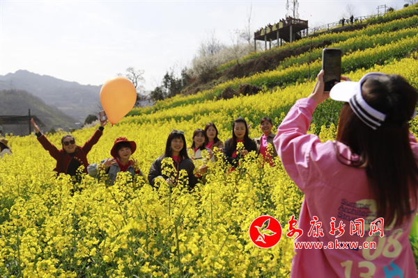 陽(yáng)春三月,嵐皋縣城關(guān)鎮(zhèn)水田村1000畝繁茂的油菜花海,為大地迅速披上一層金色的盛裝,吸引眾多的游客紛紛前來(lái)觀光旅游,分享陽(yáng)春三月、鳥語(yǔ)花香的鄉(xiāng)間美麗景色。(攝影 廖霖)?