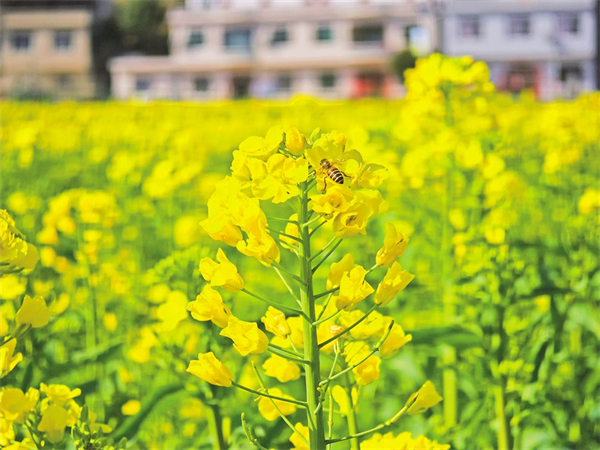 春暖花開,旬陽市仁河口鎮(zhèn)水泉坪千畝油菜花海競相綻放,慕名而來的游客們在觀光步道上觀光散步,三五伙伴一起拍照打卡、合唱民歌,欣賞高山出平川的獨(dú)特自然風(fēng)光。