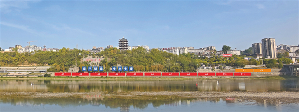 江北廣告位紅色區(qū)域:A1—A11,規(guī)格35米*7米,費(fèi)用7萬。