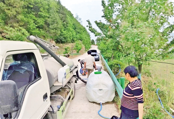 “送水車就是‘及時雨’呀!”4月25日清晨6時,送水車準時駛?cè)霛h濱區(qū)早陽鎮(zhèn)東灣村,15組村民胡成寶邊說邊將接滿的水桶搬進廚房,臉上寫滿了感激。