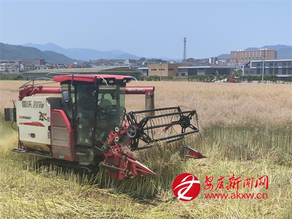 5月19日,石泉縣池河鎮(zhèn)五愛村油菜種植基地里,大型聯(lián)合收割機正進行采收作業(yè)。池河鎮(zhèn)今年種植油菜8600畝,已全部成熟并有序組織搶收。當地大力推廣機械化作業(yè),既提升采收效率,又能實現(xiàn)秸稈還田,有效解決焚燒秸稈問題。(通訊員 王朋)?