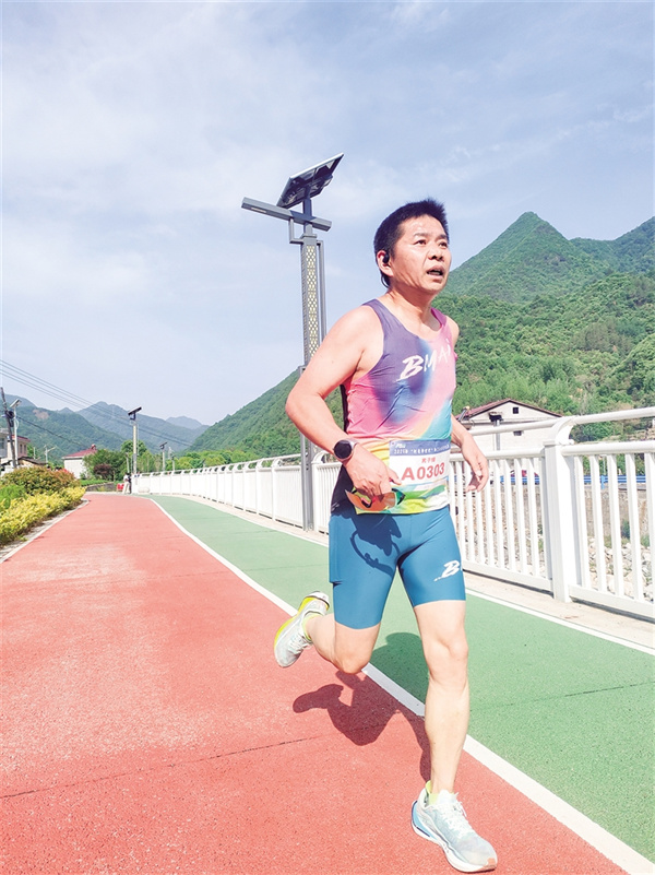 沿途的補給站早已經(jīng)準備就緒,啦啦隊舉著“加油”的標(biāo)語牌揮舞,沿途的村民不分男女老少紛紛為選手鼓勁。比賽中,臨近退休卻堅持跑步10余年的“老將”肖軍鼓勵大家:“一定要穩(wěn)住節(jié)奏,后半程才不會掉速!”大顆大顆的汗水在他臉頰流淌,卻掩不住他眼中躍動的光芒。