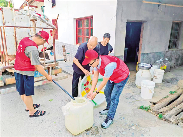 5月20日,嵐皋縣藺河鎮(zhèn)和平村的一處院落里,村民余井貴望著鎮(zhèn)人大代表李鵬與送水志愿者李增歡等人駕駛送水車而來(lái),緊鎖的眉頭終于舒展,喃喃道:“哎呀,小李他們又來(lái)送水了!”
