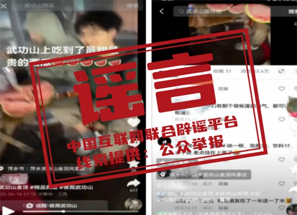 真相:近日,有網(wǎng)民在短視頻平臺發(fā)布“江西萍鄉(xiāng)武功山景區(qū)存在‘一錘子買賣’‘天價(jià)西瓜’”的視頻,引發(fā)社會關(guān)注。經(jīng)查,視頻中 “賣西瓜” 的男子實(shí)為旅行社組織的武功山景區(qū)游客,途中接受視頻發(fā)布者邀請參與拍攝了一段“賣西瓜”的視頻。該西瓜系旅行社同行人員所帶,并非如視頻所說在景區(qū)內(nèi)購買,景區(qū)也不存在網(wǎng)傳的“18元泡面”、“240元西瓜”等情況。目前,公安機(jī)關(guān)已對造謠者作出行政拘留十日的行政處罰。(來源:“公安部網(wǎng)安局”微信公眾號、“江西網(wǎng)警”微信公眾號)