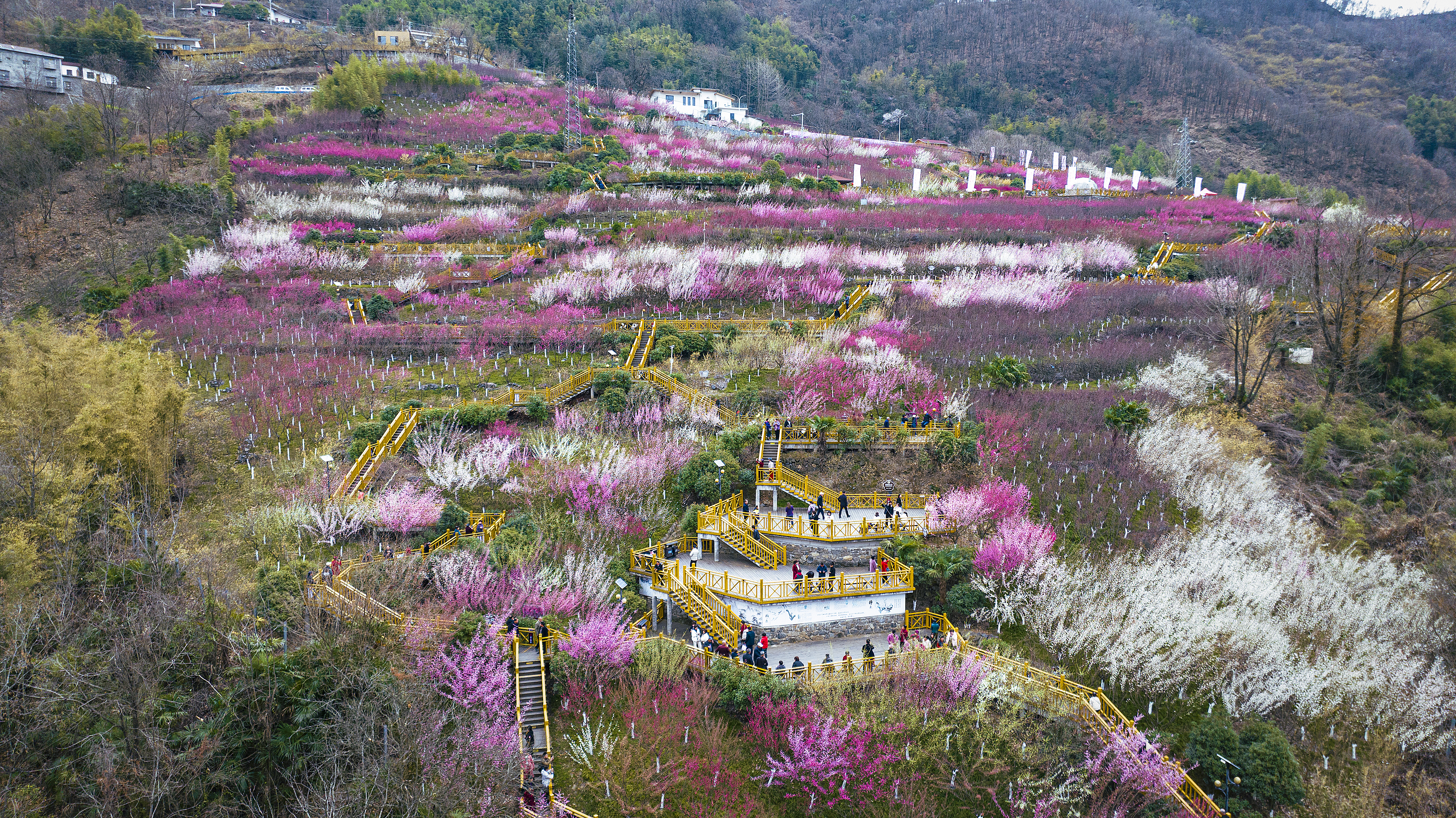 近日,寧陜縣梅子鎮(zhèn)子午梅苑的梅花凌寒盛放。百畝花海粉白相間、蔚為壯觀,吸引眾多游客聞香而至。(董長松 攝)
