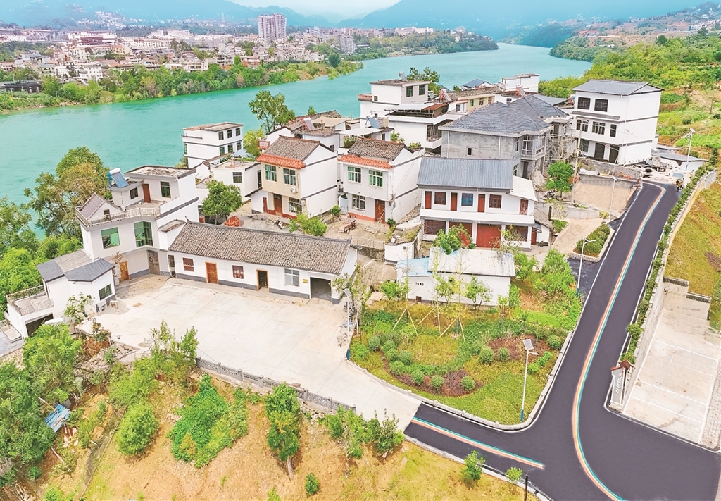 漢濱區(qū)張灘鎮(zhèn)立石村王家院子55戶農(nóng)房完成風(fēng)貌改造,昔日農(nóng)舍變?yōu)閯e具特色的“江景院落”。 李靖 攝
