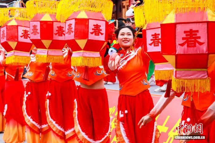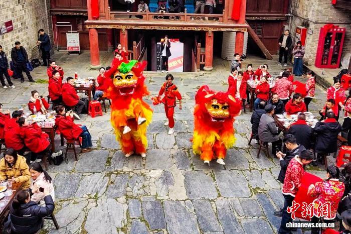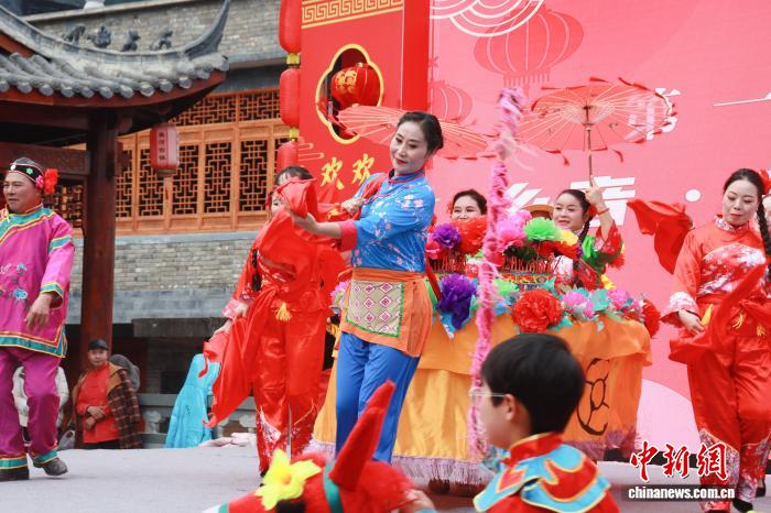 2月4日,全國(guó)“村晚”示范展示點(diǎn)活動(dòng)暨旬陽(yáng)市“我在古鎮(zhèn)過(guò)大年”文旅活動(dòng)在陜西安康旬陽(yáng)市蜀河鎮(zhèn)啟動(dòng)?;顒?dòng)緊扣“古鎮(zhèn)年味”元素,融合漢江航運(yùn)文化、鄉(xiāng)村振興等內(nèi)容,以村歌聯(lián)唱、戲曲薈萃、農(nóng)民走秀、農(nóng)產(chǎn)品展銷(xiāo)等形式,營(yíng)造出了濃厚的春節(jié)氛圍。圖為活動(dòng)現(xiàn)場(chǎng)。 張昊 攝
