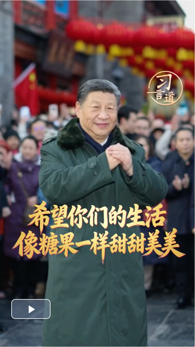 每逢春節(jié)前夕,總書記都會(huì)走到基層、百姓中間。在天津古文化街,總書記掏錢買麻花作為見(jiàn)面禮,送給身旁的小朋友,說(shuō)“送你一份麻花”;在遼寧,總書記接下孩子們遞來(lái)的糖果,親切地說(shuō),你們的糖我收下,吃了你們的糖心里很甜。一個(gè)個(gè)親切有愛(ài)的感人畫面,充滿了溫情,傳遞著感動(dòng)。