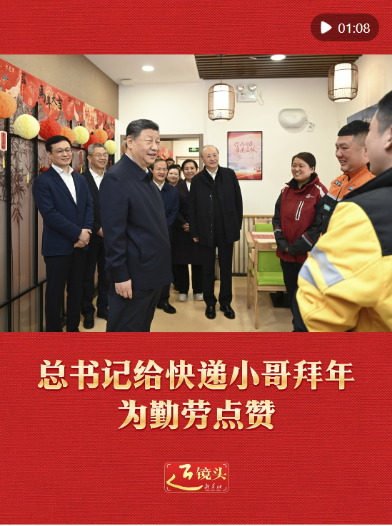 10日上午,習(xí)近平總書記在北京考察調(diào)研,走進(jìn)西城區(qū)新街口街道父母食堂,見到在這里休息的快遞小哥,關(guān)切詢問他們的工作和生活,為他們付出的辛勞和作出的貢獻(xiàn)點贊,并給他們拜年。