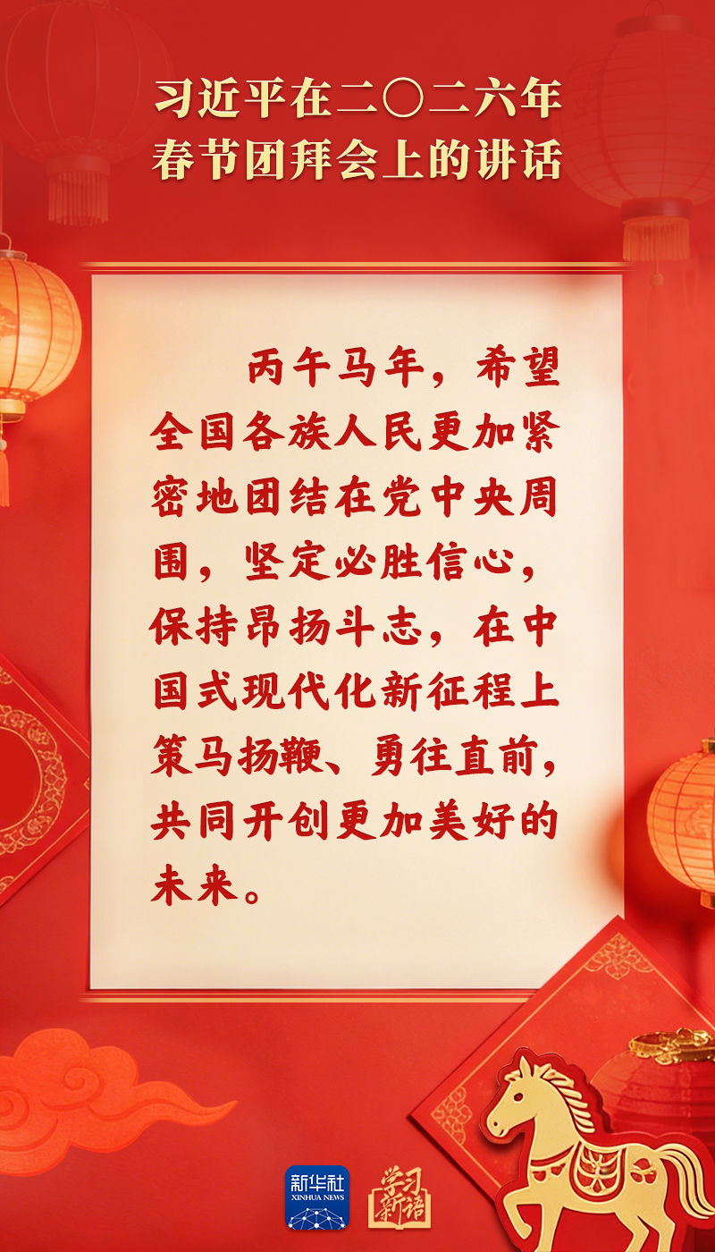 原標題:學習新語|策馬揚鞭、勇往直前!2026年春節(jié)團拜會總書記講話金句
