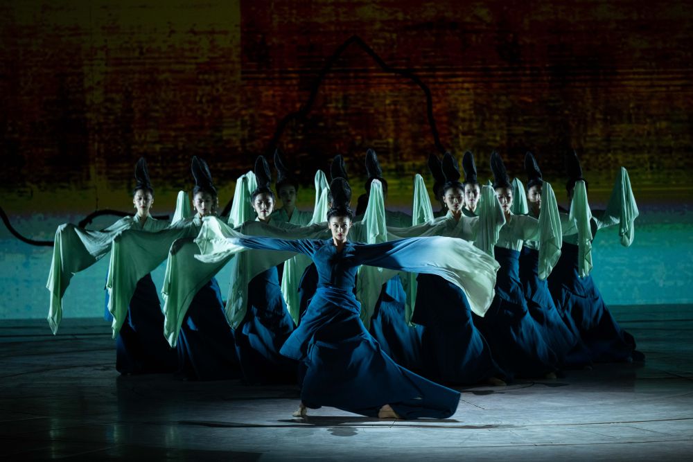 這是舞劇《唯我青白》的演出劇照(2024年8月16日攝)。該劇以器型為線索串聯(lián)篇章結構,以中華傳統(tǒng)美學引領創(chuàng)作,刻畫了宋元時期青白瓷手工匠人的典型人物。