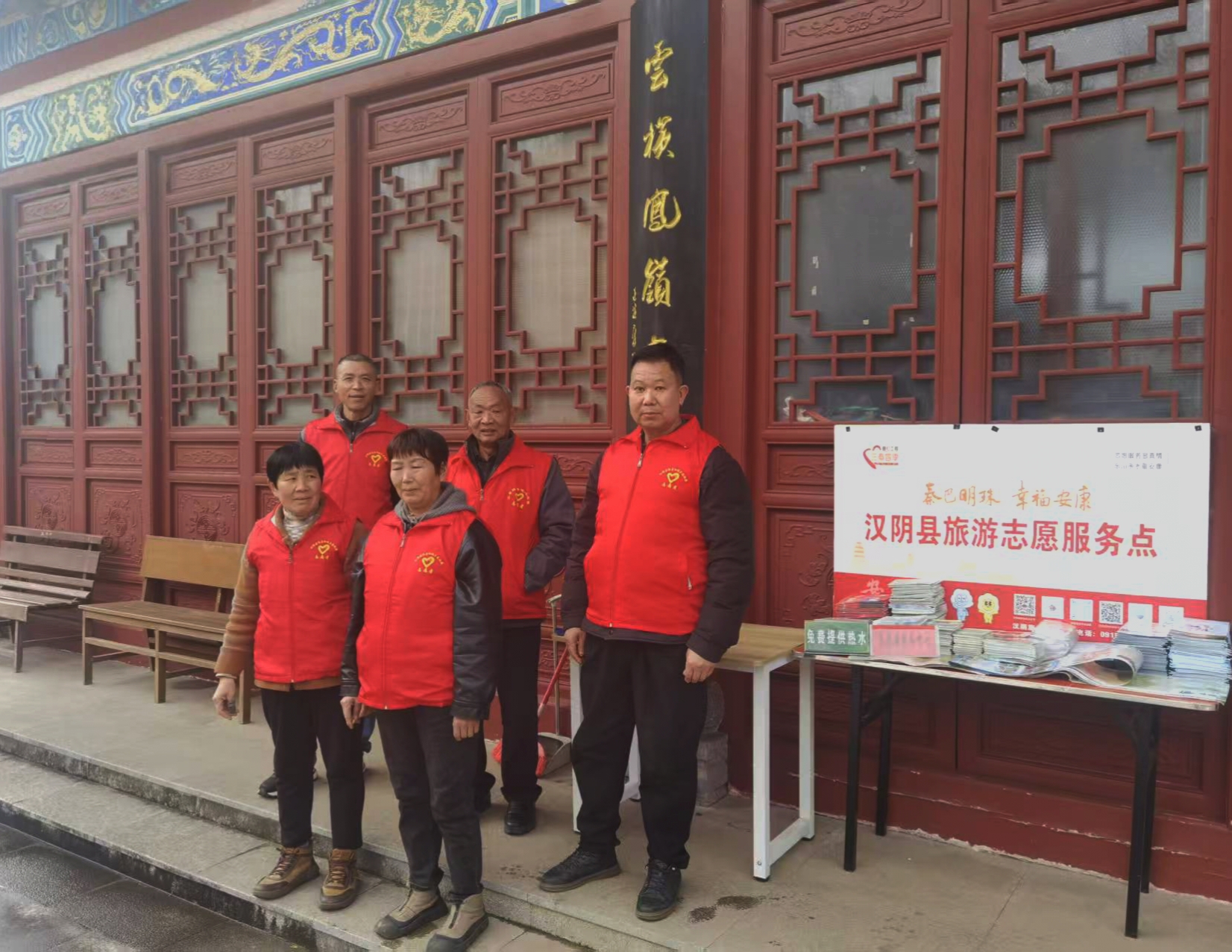 春節(jié)期間,志愿者在漢陰縣龍崗公園堅守崗位。他們放棄與家人團聚的時光,用行動詮釋奉獻與擔當,守護游客的平安與歡樂。王磊 攝