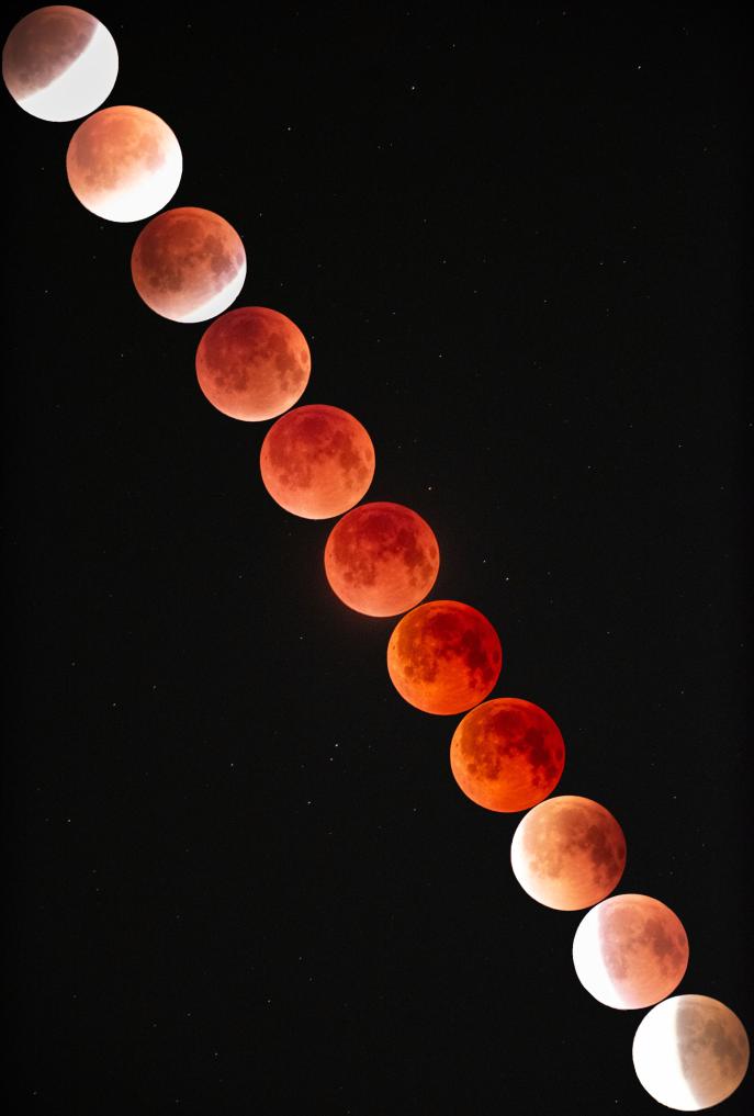 如何觀測(cè)和拍攝這輪“紅月亮”?蔣晨明告訴記者,與日食不同,月食可以直接用肉眼觀測(cè),無(wú)需佩戴任何防護(hù)設(shè)備;如果有望遠(yuǎn)鏡,可以看清月亮表面陰影、環(huán)形山、“紅月亮”層次,效果壯觀震撼;喜歡攝影的朋友可以使用專業(yè)相機(jī)或手機(jī)針對(duì)各階段的月亮形態(tài)分別拍攝,做延時(shí)拍攝還可以還原月食的全過(guò)程。