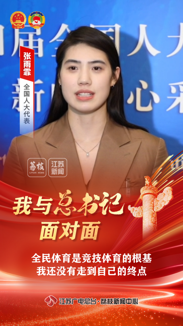 南京體育學(xué)院游泳隊運(yùn)動員、游泳學(xué)院副院長張雨霏代表,向總書記匯報了“蘇超”等大眾體育對競技體育的促進(jìn)作用,她自己參加奧運(yùn)的“戰(zhàn)績”和對未來征戰(zhàn)賽場的目標(biāo)和規(guī)劃。