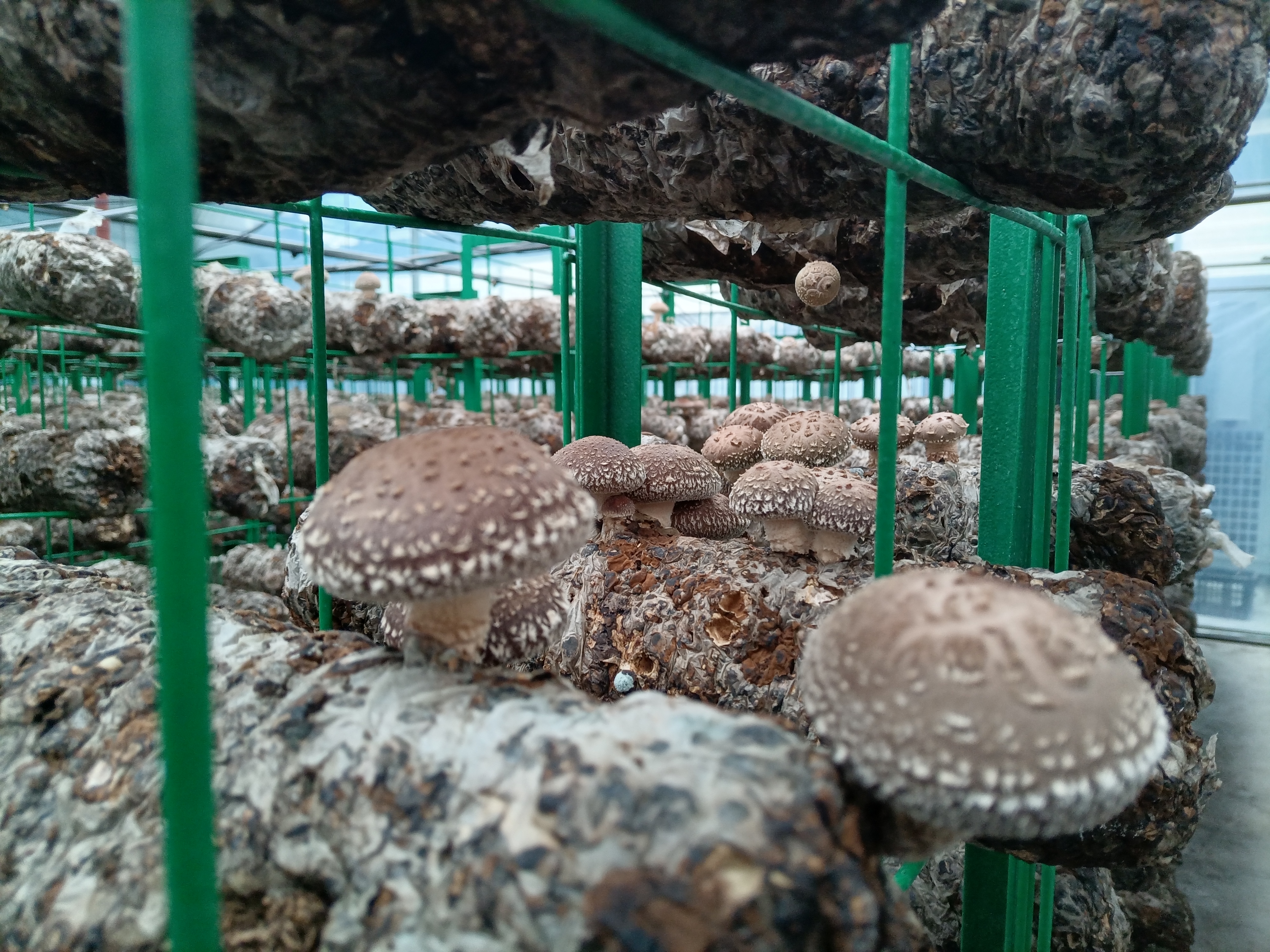 △ 喜河鎮(zhèn)晨光村食用菌標(biāo)準(zhǔn)廠房?jī)?nèi)香菇長(zhǎng)勢(shì)喜人