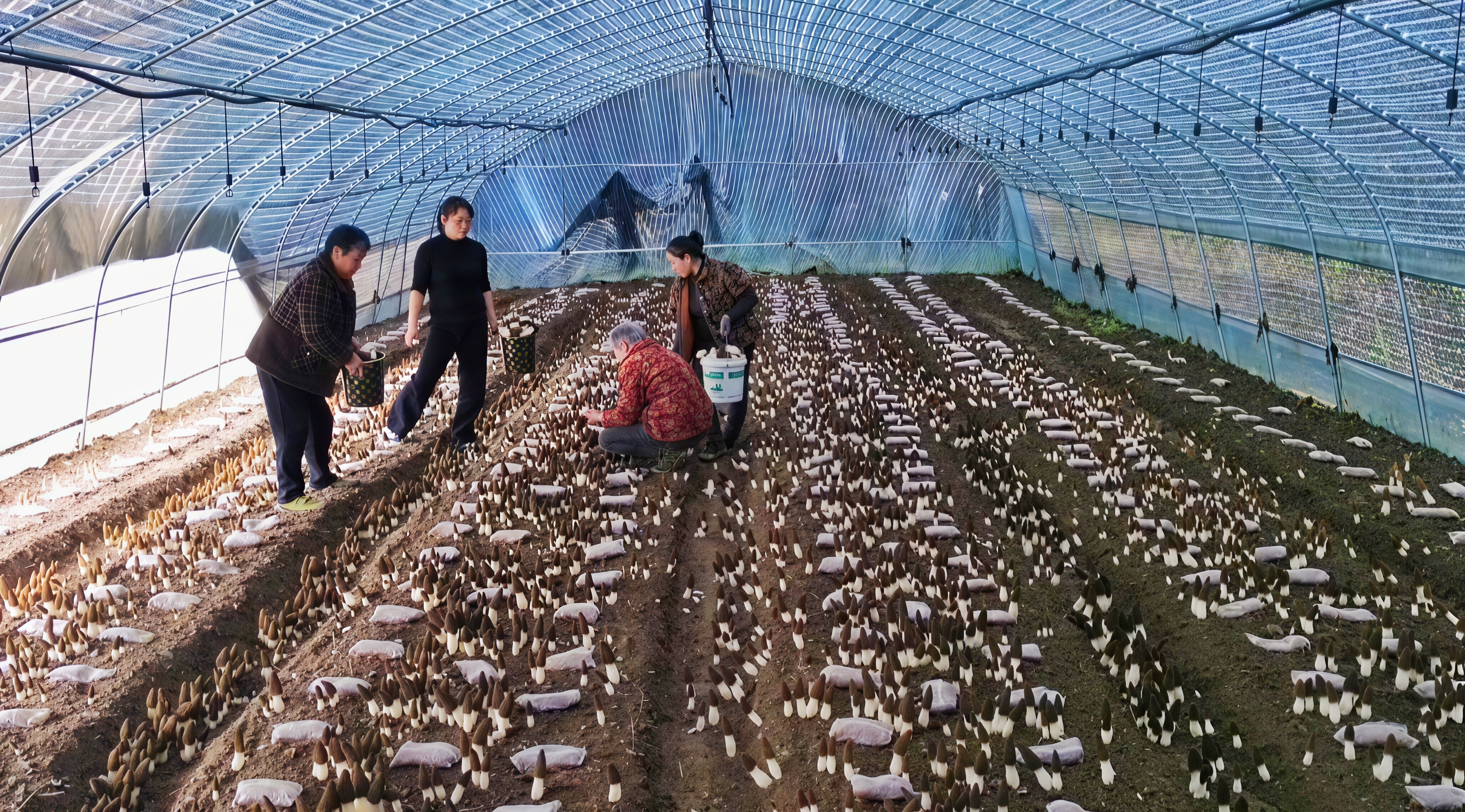 △ 喜河鎮(zhèn)大雁村羊肚菌種植基地采摘現(xiàn)場(chǎng)