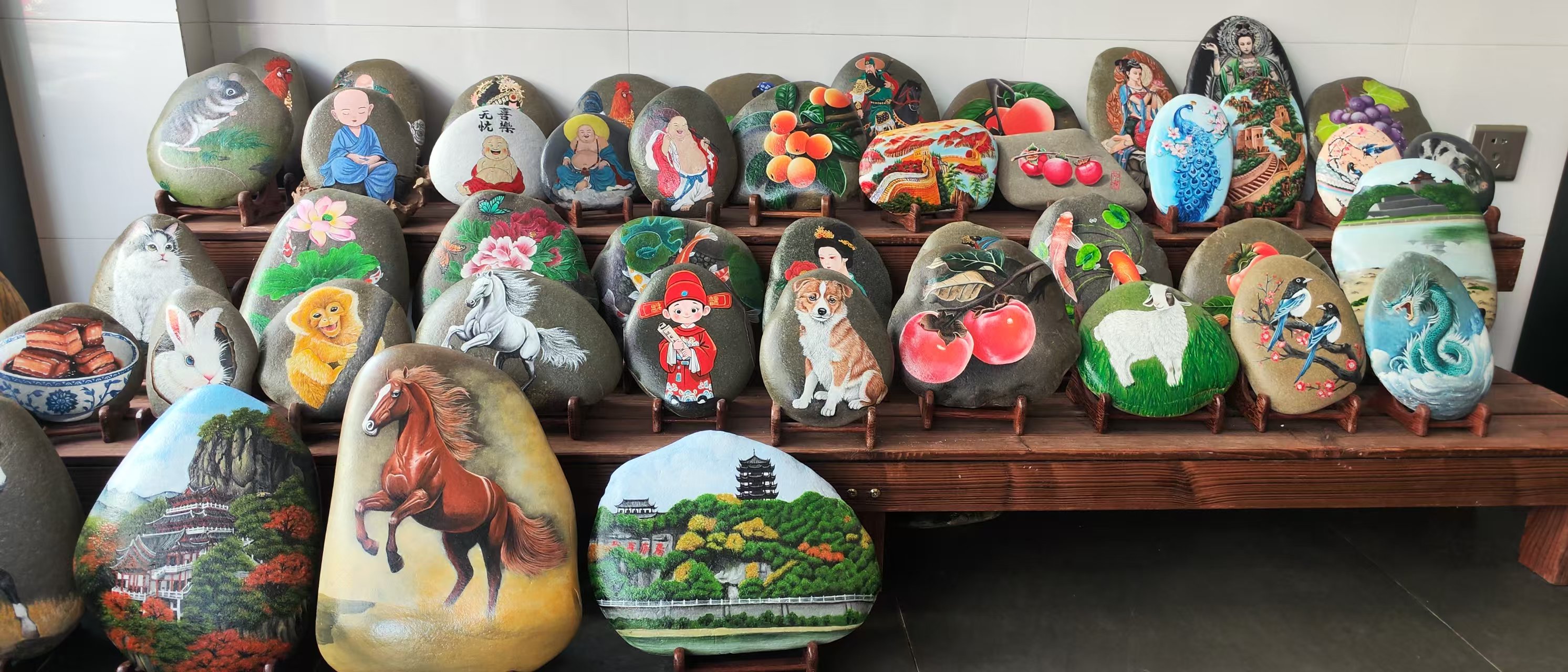 就在困頓迷茫之際,心底深藏著對(duì)繪畫的熱愛,成了照亮她前行的微光。為了排解病痛的折磨,也為了謀求一絲收入,李景麗重新拾起畫筆。起初只是在紙上作畫,一次偶然在網(wǎng)上看到石頭畫創(chuàng)作,她便萌生了嘗試的念頭。第一幅石頭畫,用的是母親壓菜缸的石頭,李景麗對(duì)著照片精心勾勒,成品出爐的那一刻,滿滿的成就感讓她重燃信心。從此,她便與漢江石相伴,每天除了吃飯睡覺,其余時(shí)間全都撲在繪畫上,山水畫、靜物、飛天神女……各類題材信手拈來,只需一張參考照片,她便能畫得惟妙惟肖。追求極致的她,總要耗時(shí)數(shù)天,直至畫作達(dá)到心中滿意的標(biāo)準(zhǔn)才肯停筆。繪畫,讓她暫時(shí)忘卻了病痛的苦楚與生活的憂愁,讓黯淡的日子重新有了溫度與希望。