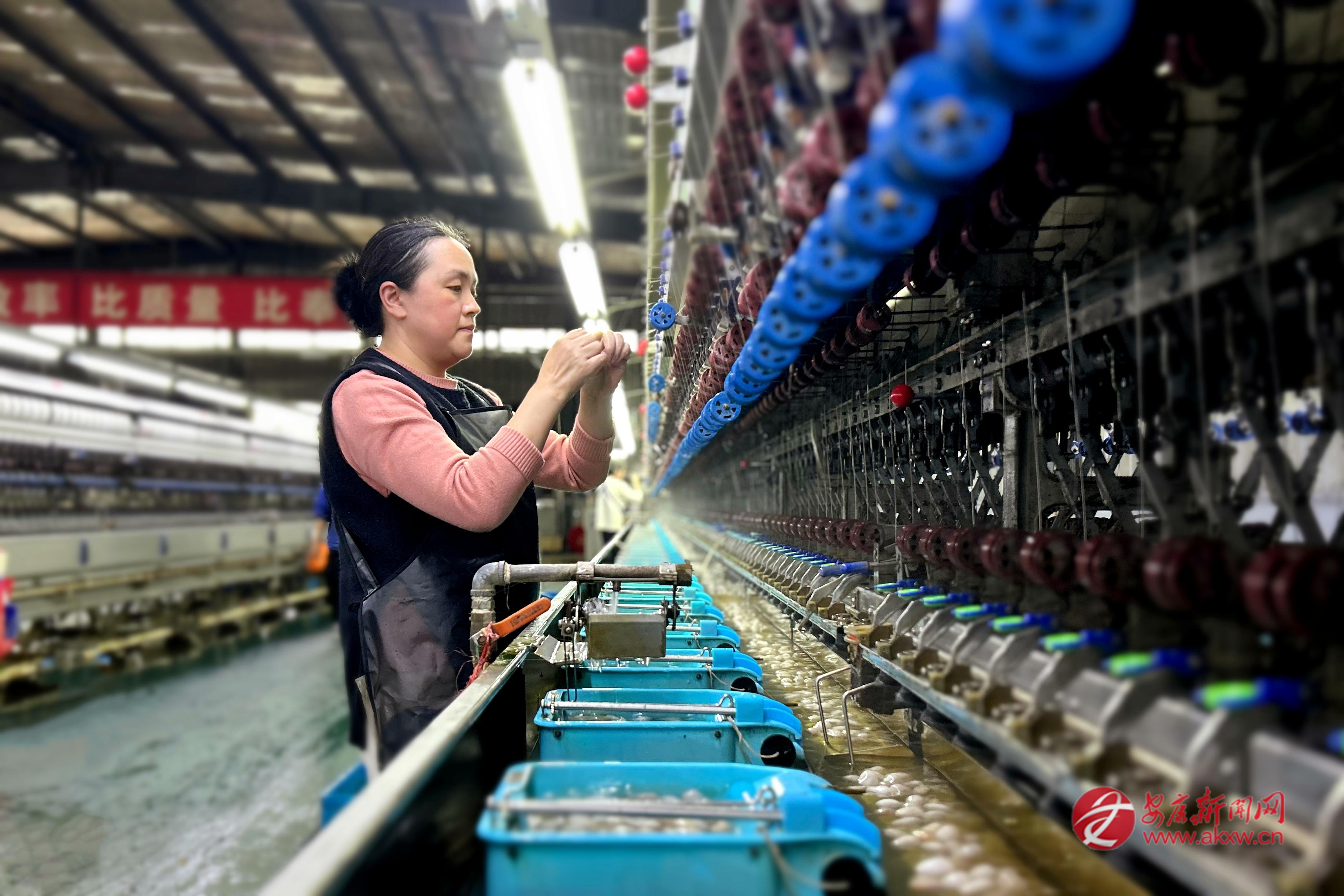 “今年國內(nèi)高端家紡市場需求旺盛,訂單一直很充足?!逼髽I(yè)負責人孫浩勇介紹,依托本地優(yōu)質(zhì)蠶繭,企業(yè)滿負荷生產(chǎn)。同時,通過“企業(yè)+合作社+農(nóng)戶”利益聯(lián)結(jié)機制,天成絲業(yè)與數(shù)千戶蠶農(nóng)簽訂保底收購協(xié)議,提供全流程服務(wù),實現(xiàn)企業(yè)增效、蠶農(nóng)增收。