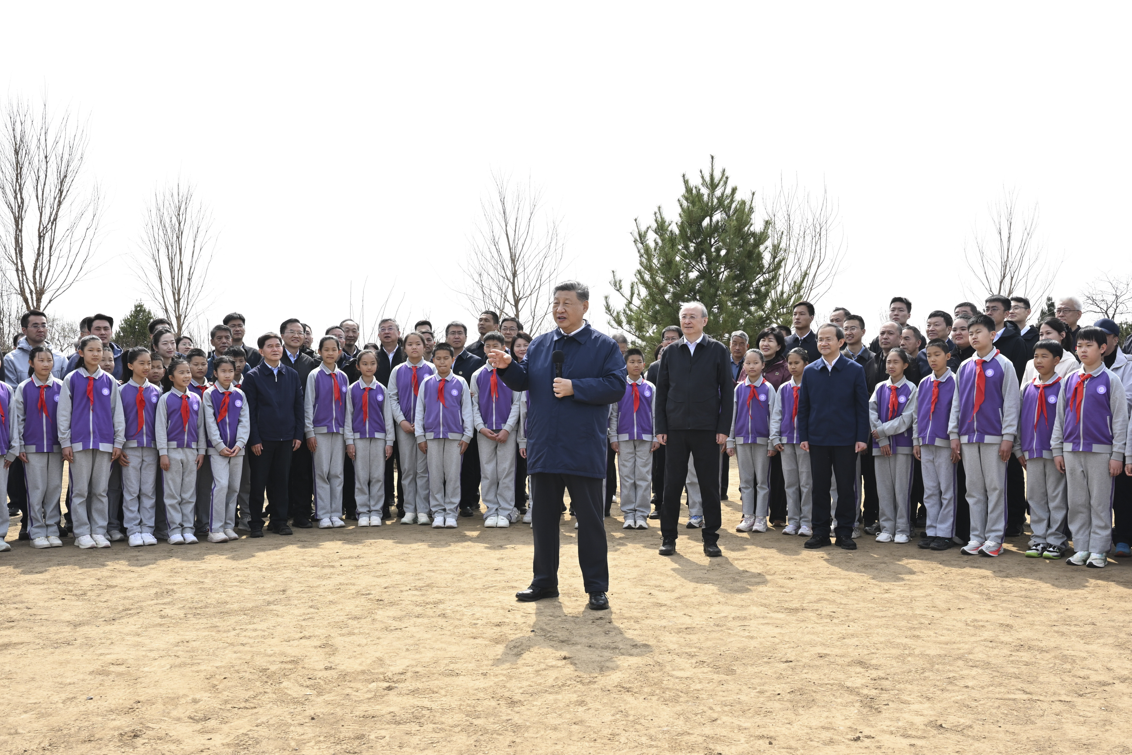 3月30日,黨和國家領(lǐng)導(dǎo)人習(xí)近平、李強、趙樂際、王滬寧、蔡奇、丁薛祥、李希等來到北京市昌平區(qū)百善鎮(zhèn)參加首都義務(wù)植樹活動。這是習(xí)近平同在場的干部群眾、少先隊員親切交談。