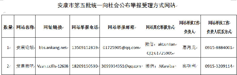 安康市第五批申報(bào)統(tǒng)一向社會(huì)公布舉報(bào)受理方式網(wǎng)站