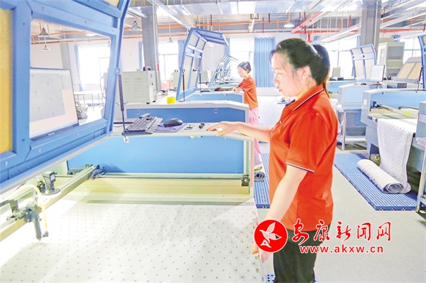 工人們正在操作激光機(jī)對(duì)毛絨玩具外形布料進(jìn)行切割。4Zw安康新聞網(wǎng)