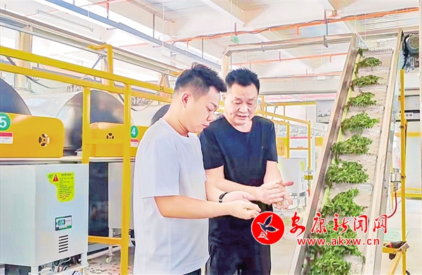 井泉茶業(yè)公司在廣佛鎮(zhèn)剛剛建成的初制茶加工廠一片忙碌,正在運(yùn)轉(zhuǎn)的機(jī)械上,一片片茶鮮葉隨著履帶高低起伏,空氣中彌漫著濃郁的茶香,經(jīng)過(guò)殺青、揉捻、干燥等工序后,收購(gòu)來(lái)的茶青就蛻變成了色綠、香郁、味醇的初制干毛茶。